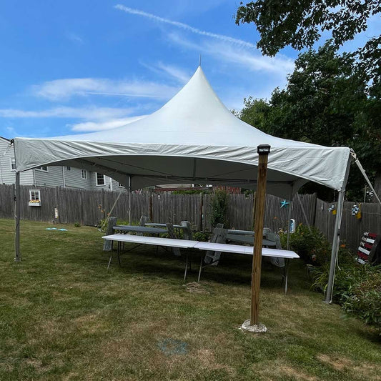 Some companies use pole tents that have twice as many legs. Our High peak frame tents provide more open space for your guests.